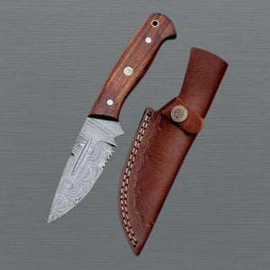 Experience superior hunting performance with this Damascus Hunting Knife featuring walnut wood handle. The stunning Damascus steel blade delivers razor-sharp precision, exceptional edge retention, and reliable strength for demanding outdoor tasks. The rich walnut wood handle provides natural beauty, comfortable ergonomic grip, and timeless elegance that feels perfect in your hand. Built for lasting durability through countless hunting seasons, this knife excels at field dressing, skinning, camping, and wilderness survival. Complete with genuine leather sheath for safe carrying and protection. Perfect for serious hunters and outdoor enthusiasts seeking authentic craftsmanship. Explore our complete Hunting Knives collection today.