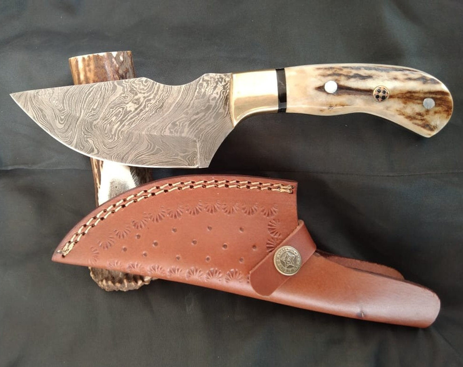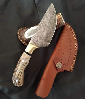Damascus Steel Skinning Knife with Stag Horn Handle