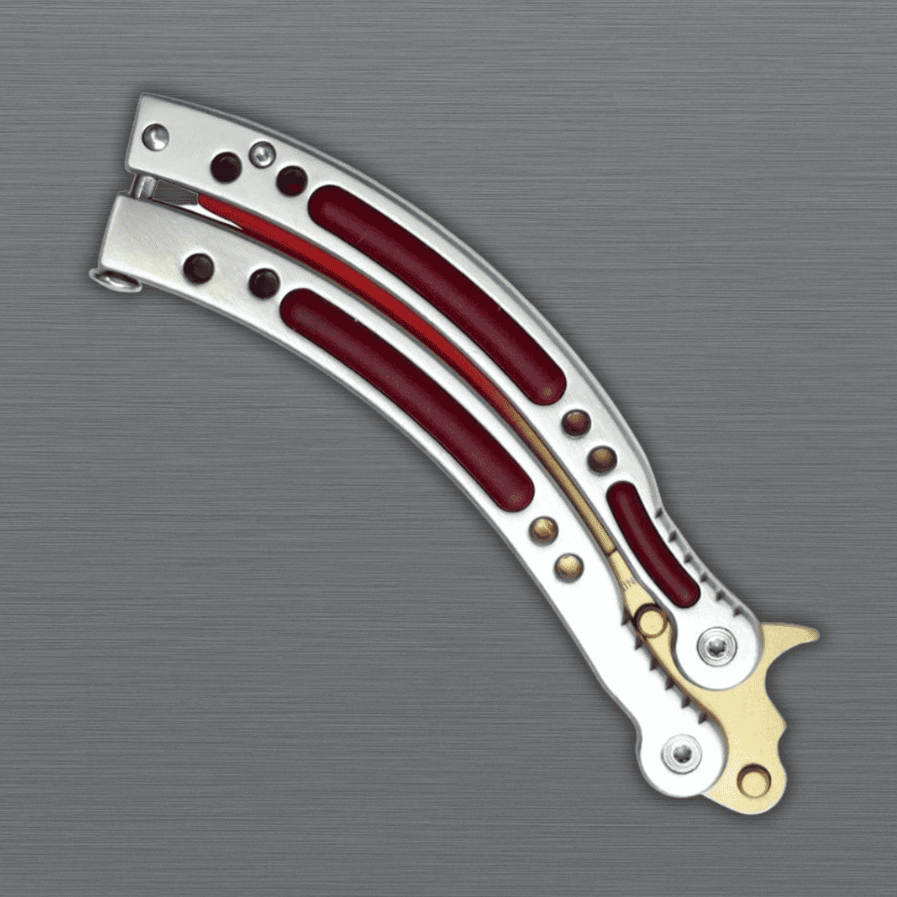 Improve your flipping skills with the Fire Fade Butterfly Trainer 9.5" Knife CSGO Style Practice, inspired by popular gaming skins. This 9.5-inch butterfly trainer features a non-sharp dull blade that allows safe and realistic practice. The grey handle offers a secure grip, giving you better control during flips, spins, and aerial tricks. Its durable, well-balanced construction supports smooth movement and long training sessions. With a 6-inch closed length, it fits comfortably in your hand and stores easily after use. Designed for beginners and advanced users, this CSGO style balisong trainer helps build coordination and confidence. Discover more trending designs in our knives category to expand your collection. Buy Now.