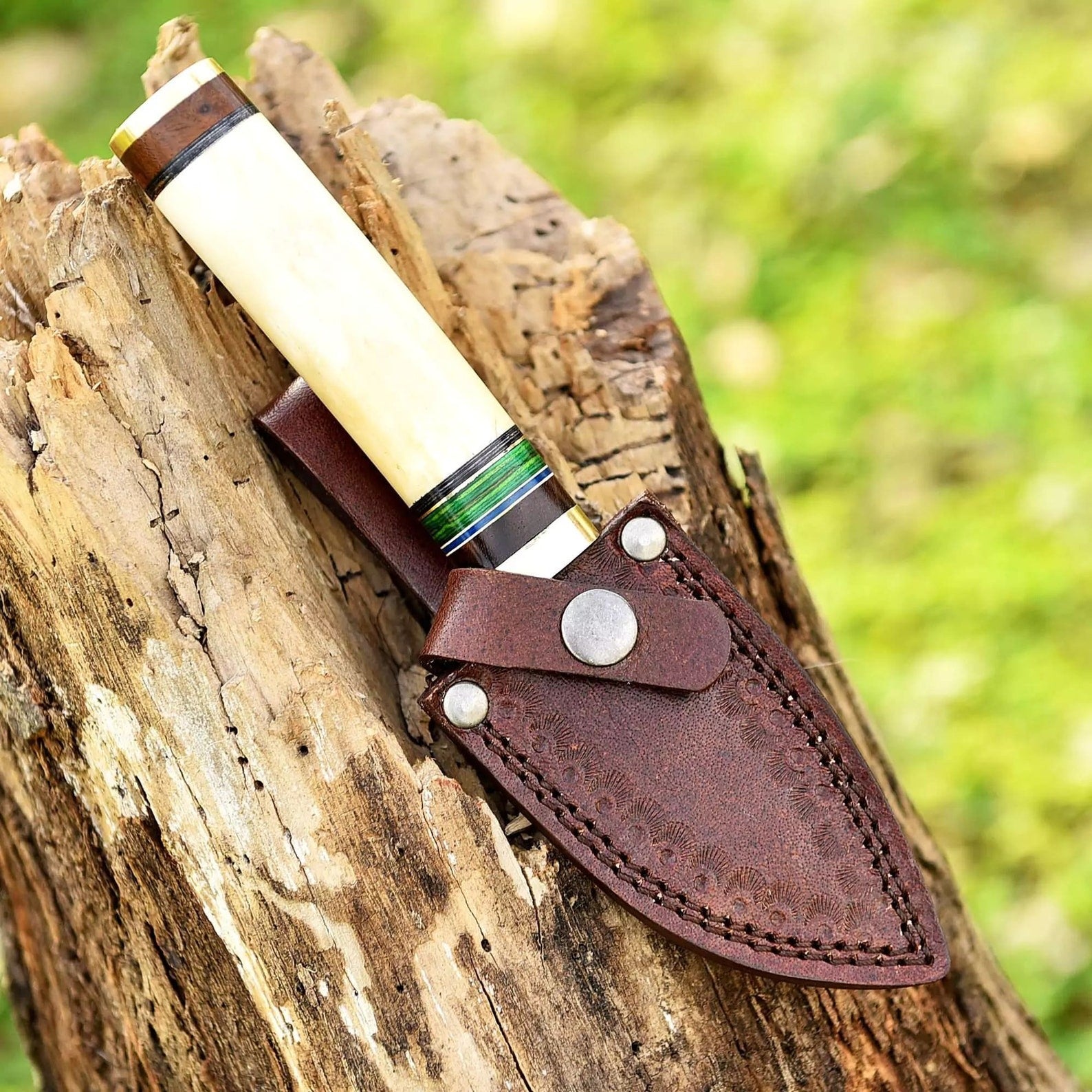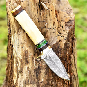 Full Tang Damascus Skinning Knife Camel Bone Handle