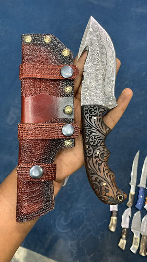 Gut Hook Damascus Skinner Knife Camping Gift For Dad
