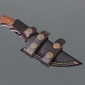 Damascus Knife Rosewood Handle And Sheath