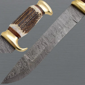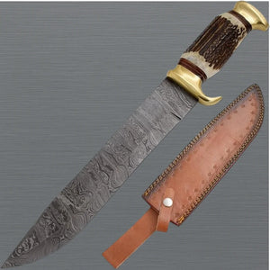 Experience superior strength with the Handmade Damascus Full Tang Hunting Knife. Each knife is individually handcrafted featuring Damascus steel blade with full tang construction for maximum durability and balance. The full tang design means the blade extends through the entire handle, providing unmatched strength, stability, and reliable performance for demanding hunting tasks. Premium Damascus construction delivers exceptional sharpness and stunning layered patterns that make every cut effortless. Built to withstand heavy-duty field dressing, skinning, camping, and wilderness challenges without compromise. Perfect for serious hunters seeking professional-grade reliability and artisan craftsmanship. Discover the Custom Made Damascus Hunting Knife today.