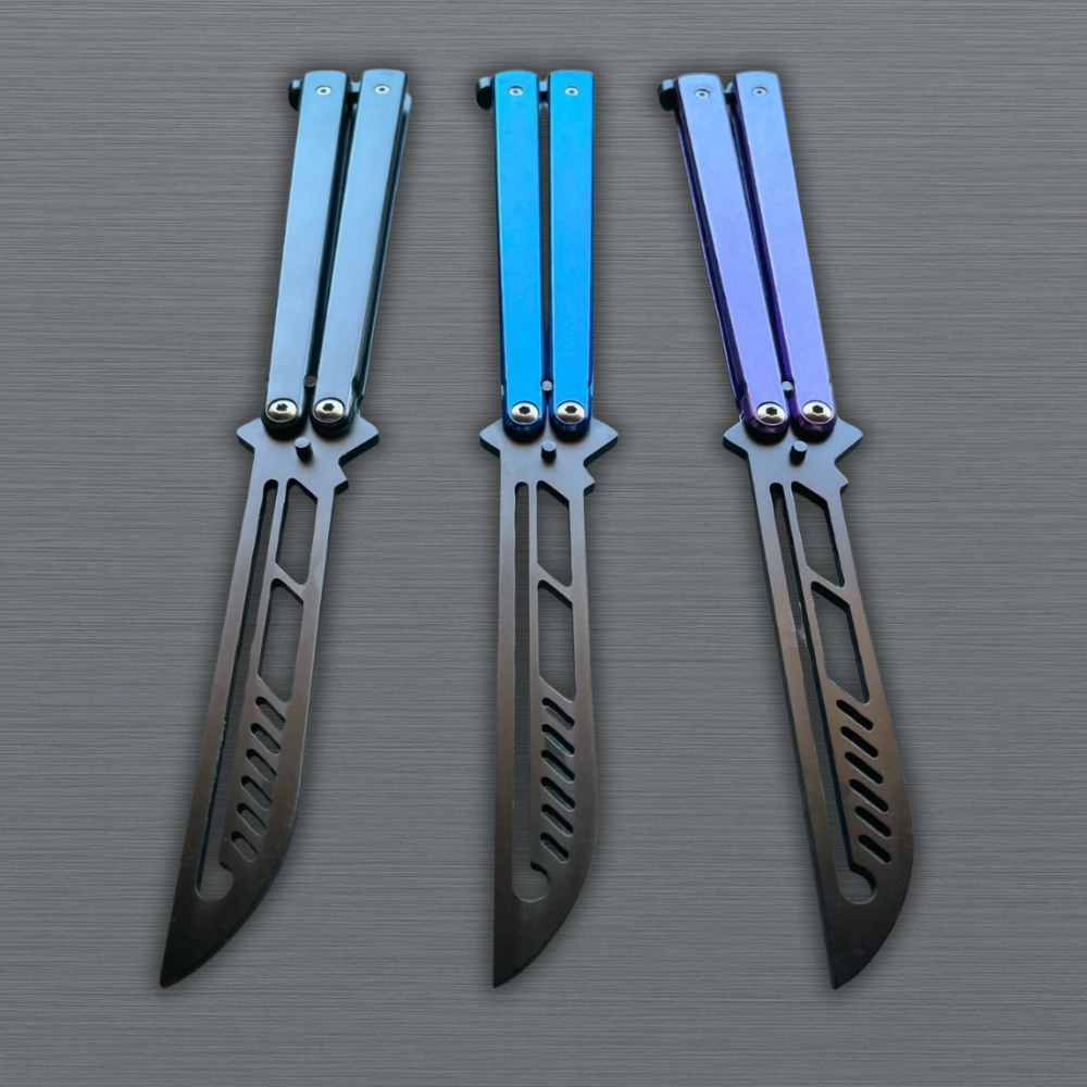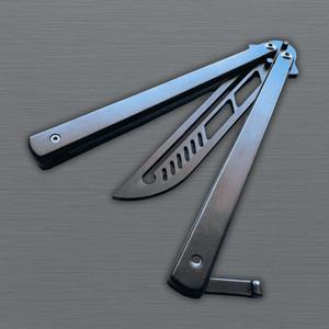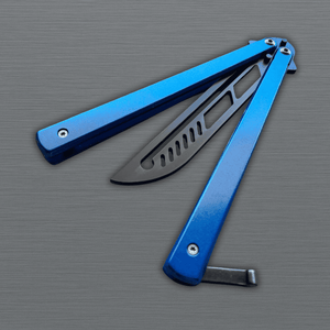 Master your flipping skills with the High Quality Balisong Trainer Metal Butterfly 9" Knife, built for safe and balanced practice. This 9-inch butterfly trainer features a 4-inch stainless steel dull blade that delivers realistic handling without sharp edges. The full aluminum handles provide strong durability while keeping the trainer lightweight and easy to control. With a 5-inch closed length, it fits comfortably in your hand and stores easily after practice. Designed for flips, rolls, and advanced tricks, it helps improve coordination and precision during daily training sessions. Its solid construction ensures smooth movement and long-lasting performance. For more everyday styles and designs, explore our knives collection to find the perfect match. Buy Now.